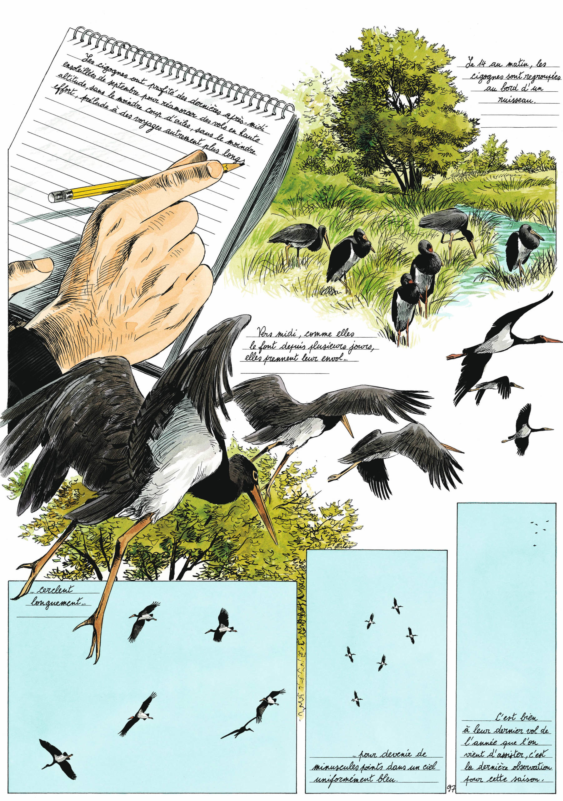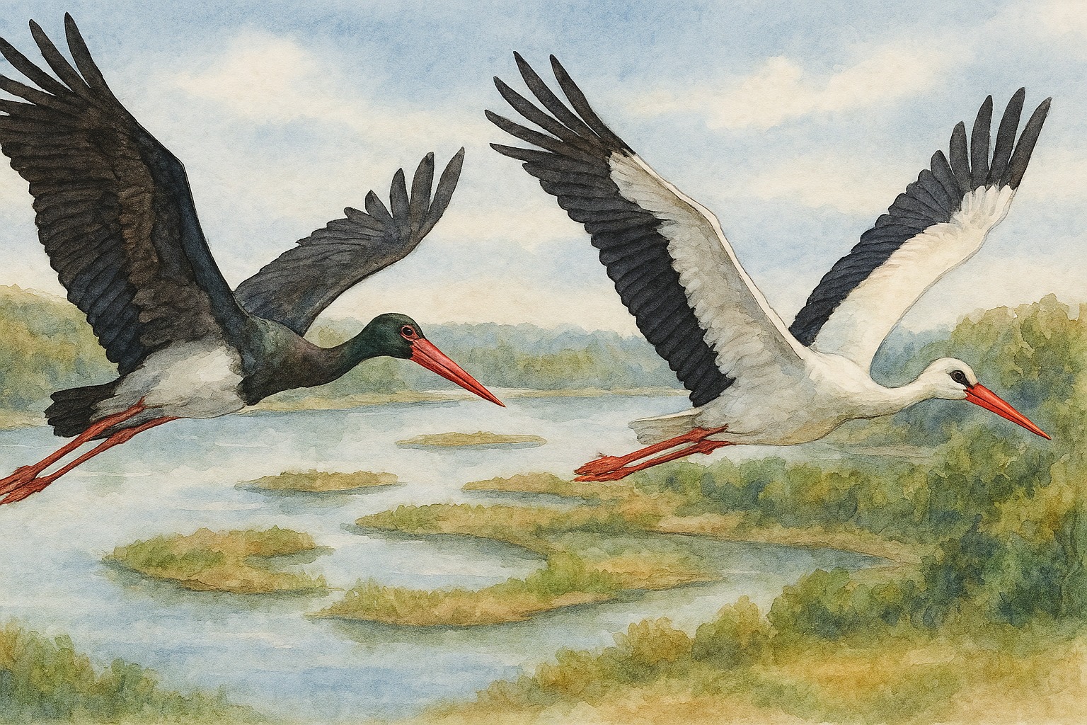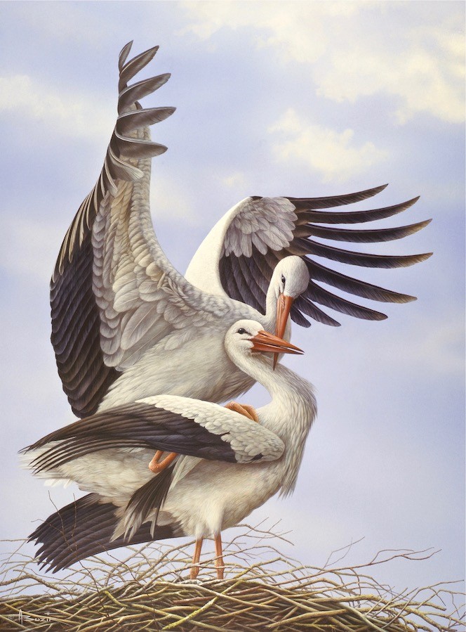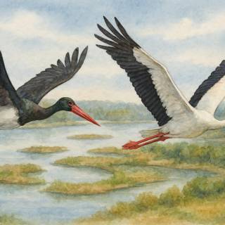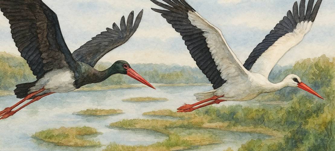 La Cigogne blanche, porte-bonheur et messagère du printemps, toujours proche de l’homme… La Cigogne noire, plus farouche et mystérieuse…